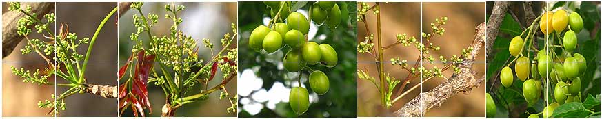 หลังจากต้นสะเดาเริ่มออกดอก ได้ประมาณ 1 เดือน ช่วงเดือนมกราคมถึงเดือนกุมภาพันธ์ ดอกสะเดาที่เหลือหลุดรอด จากการเป็นอาหารอันโอชะของคนเรา ก็เริ่มทยอยติดผล สะเดาเป็นพืชที่เชื้อราและแมลงไม่รบกวน จึงมีโอกาสติดลูกแทบจะ 100% หลังจากนั้นประมาณ 1 เดือน จะเริ่มเห็นพวงลูกสะเดาห้อยระย้าเต็มต้น ซึ่งก็คือช่วงนี้ของเดือนเมษายน ลูกสะเดามีลักษณะผลคล้ายองุ่น มีสีเขียวเป็นพวงคล้ายๆ กัน เมื่อแก่เต็มที่สีผลจะเปลี่ยนเป็นสีเหลือง เมื่อสุกงอมผลจะหลุดล่วงลงใต้ต้นมองดูสีเหลืองเกลื่อนตาทั่วไปหมด |