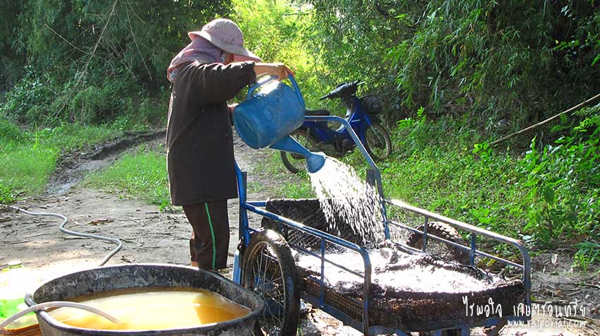 การรดน้ำ หลังจากโรยดินโรยเมล็ดข้าว |
